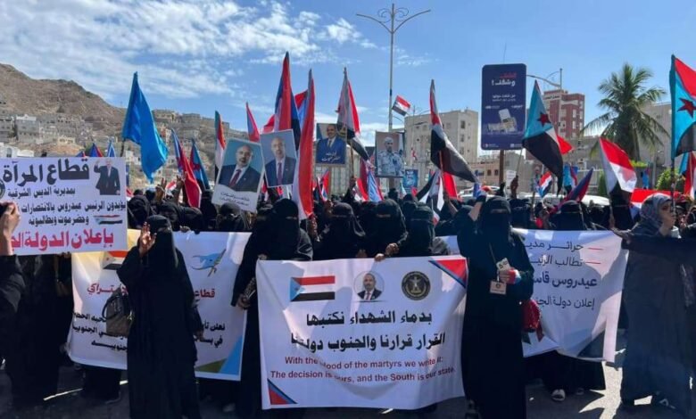 حضور حاشد لحرائر وماجدات حضرموت في ساحة الاعتصام بالمكلا