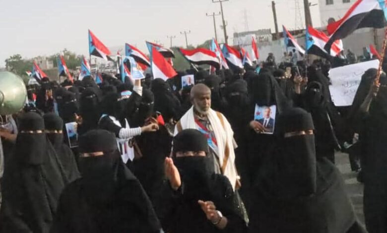 احتشاد نسوي ومسيرة شعبية كبرى لحرائر مديرية تبن يطالب بإعلان دولة الجنوب العربي