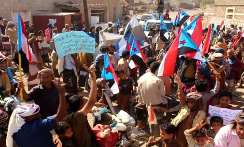 مظاهرة حاشدة في كرش بلحج تندد بالعدوان السعودي وتبارك قرارات الرئيس الزُبيدي