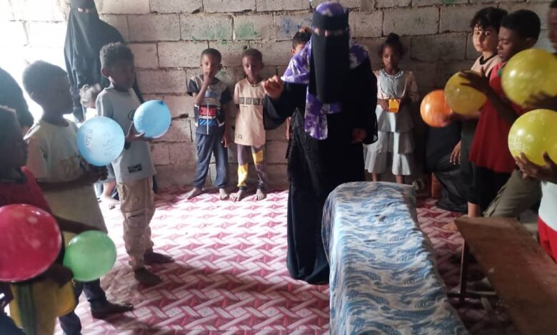 إدارة المرأة والطفل بالشؤون الاجتماعية بأبين تنفذ أنشطة دعم نفسي للأطفال والنساء في جمعية اللكيدة