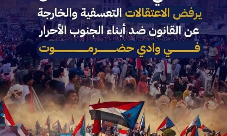 تراقب الهيئة التنفيذية للقيادة المحلية للمجلس الانتقالي الجنوبي بالعاصمة عدن، بقلق بالغ وغضب شعبي متصاعد، تصاعد موجة الإرهاب السياسي والقمع الممنهج الذي تمارسه ما تسمى “قوات الطوارئ اليمنية وقوات درع الوطن بعناصرها المنتمين للشمال” والمليشيات الإخوانية في وادي وصحراء حضرموت، والتي ترجمت فشلها الذريع أمام الإرادة الشعبية بحملة اعتقالات تعسفية واسعة وخارجة عن القانون، استهدفت العشرات من أبناء الجنوب الأحرار، وفي مقدمتهم قيادات وكوادر الهيئة التنفيذية المساعدة في وادي وصحراء حضرموت والمشاركين في التظاهرات السلمية الرافضة للاحتلال.