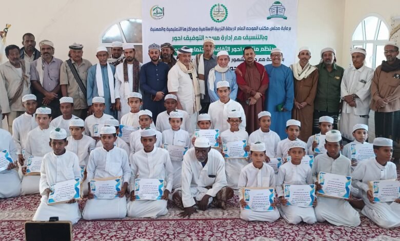 منتدى أحور ودار المشهور يختتمان مسابقة حفظ القرآن الكريم بحفل بهيج وتكريم 28 متسابقًا