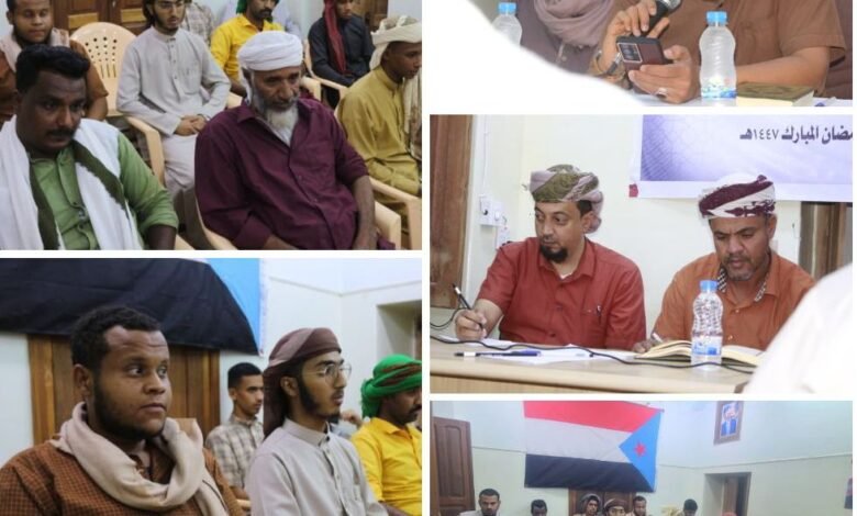 أقامت دائرة الفكر والإرشاد بمديرية شبام محافظة حضرموت، مساء الثلاثاء 14 رمضان 1447هـ، مسابقة الرئيس الزُبيدي لحفظ القرآن الكريم تحت شعار “معا نرتقي بالقرآن خلقا وسلوكا وهوية”، بمشاركة 7 متسابقين من مختلف مناطق المديرية.