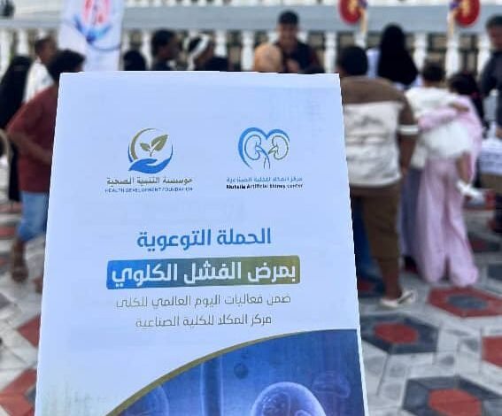 حملة توعوية في المكلا لرفع الوعي بمخاطر الفشل الكلوي وطرق الوقاية منه