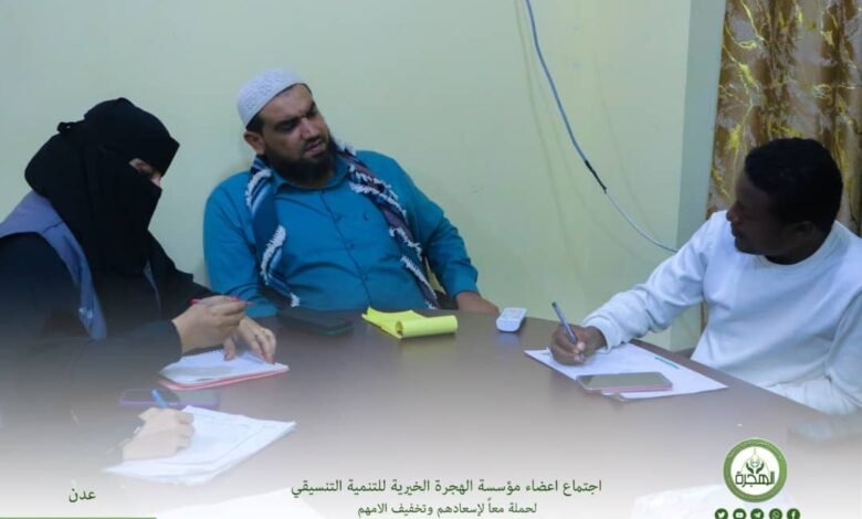 عقدت مؤسسة الهجرة الخيرية للتنمية بالعاصمة عدن اجتماعها التنسيقي لحملة (معاً لإسعادهم وتخفيف آلامهم) للعام 2026م، وذلك يوم الأحد 9 ذي القعدة 1447هـ الموافق 26 أبريل 2026م، في أجواء يسودها الإخلاص وتتوحد فيها النوايا لخدمة الفئات الأشد احتياجًا.