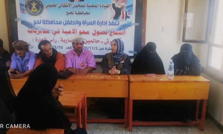 برعاية القيادة المحلية للمجلس الانتقالي الجنوبي محافظة لحج أشرفت الاستاذة اروى المقطري رئيسة إدارة المرأة والطفل بقيادة انتقالي المحافظة على تدشين وافتتاح فصلين دراسيين لمحو الأمية وتعليم الكبار في منطقتي السُّفيلى والجُريبه بوادي حدابه / كرش..