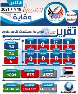 ليصبح بذلك إجمالي الحالات المؤكدة بفيروس كورونا في الجنوب إلى (4527) منها (875) وفاة و(1891) تعافي