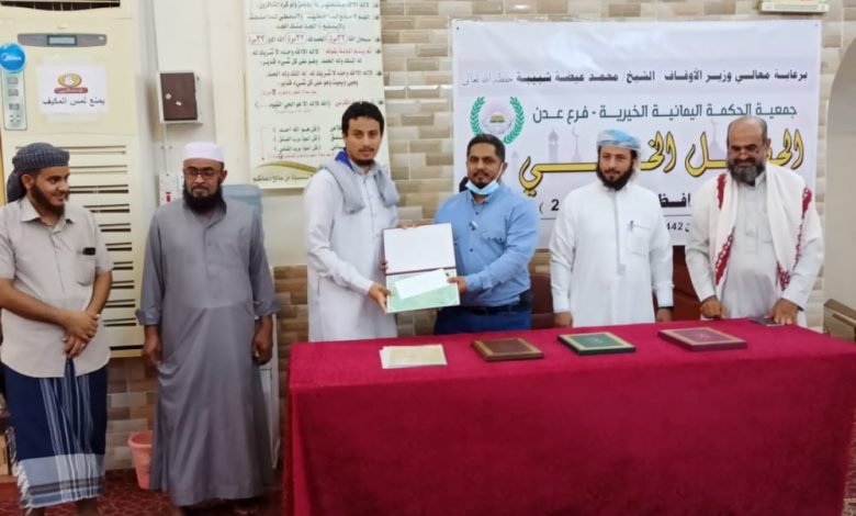 بحضور مدير عام مديرية البريقة القاضي فهمان عطيري.. جمعية الحكمة اليمانية بعدن تختتم مسابقة “الحافظ المعتمر” السنوية