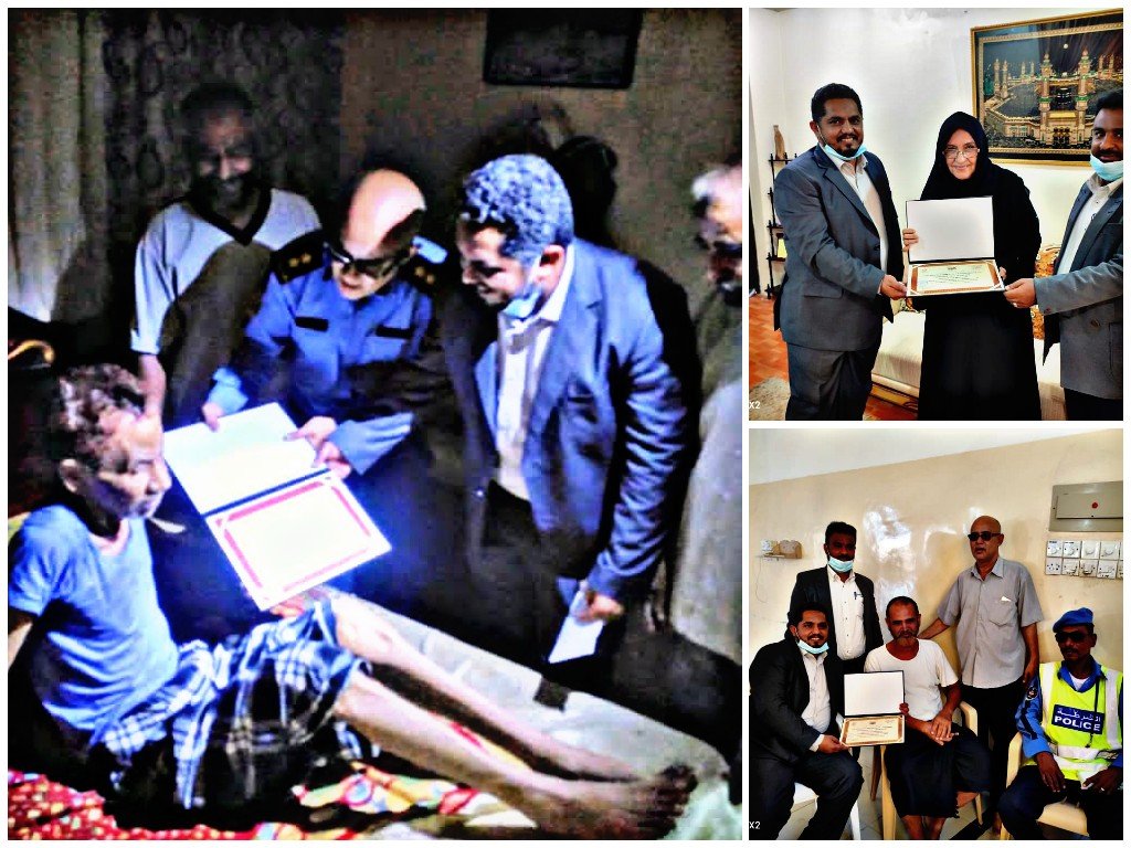 خلال زيارته إلى منازلهم للإطمئنان على صحتهم .. مدير عام البريقة يكرم عدد من الكوادر التربوية والأمنية بالمديرية