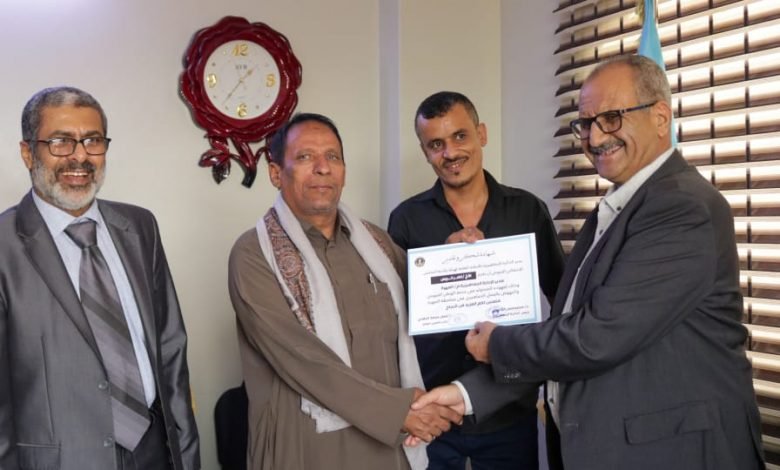 وسلًّم الأستاذ فضل الجعدي الشهادتين التقديريتين الممنوحتين من قبل الدائرة الجماهيرية للإدارتين الجماهيريتين في تنفيذيتي الانتقالي بمحافظتي أبين المهرة وذلك تقديرا لجهودها المشهودة، والمبذولة في خدمة الوطن والمواطنين، وذلك بحضور الدكتور محمد فضل القطيبي، رئيس الدائرة الجماهيرية بالأمانة العامة لهيئة رئاسة المجلس.