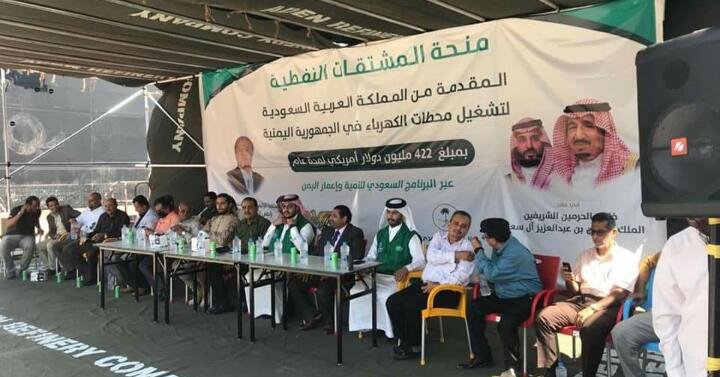 وعقب وصولها دشن البرنامج السعودي لتنمية وإعمار اليمن مؤتمراً صحفياً شارك فيه عدد من قيادات وزارة الكهرباء والطاقة والمؤسسة العامة للكهرباء والسلطة المحلية للعاصمة عدن أستعرض من خلاله على أبرز ما تتضمنه منحة المشتقات وأهم أهدافها وآلية عملها.