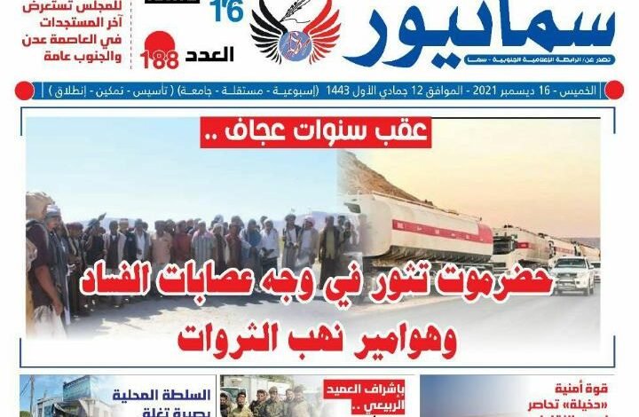 تصفح العدد الورقي من صحيفة “سما نيوز” عدد رقم 188 الصادرة عن الرابطة الإعلامية الجنوبية -سما