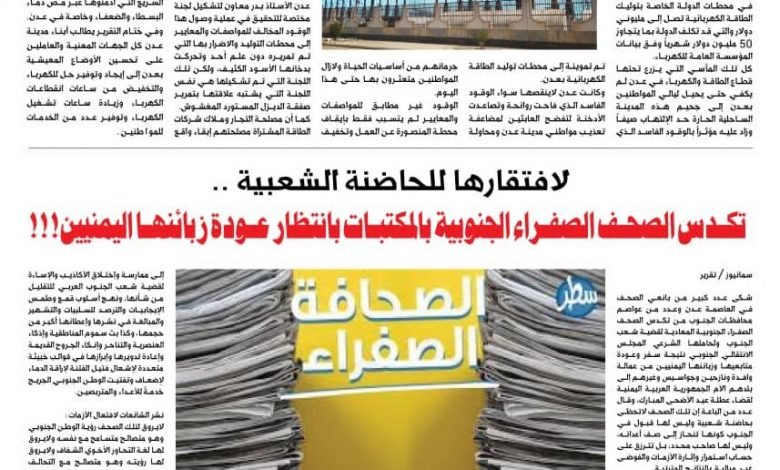 شكى عدد كبير من بائعي الصحف في العاصمة عدن وعدد من عواصم محافظات الجنوب من تكدس الصحف الصفراء الجنوبية المعادية لقضية شعب الجنوب ولحاملها الشرعي المجلس الانتقالي الجنوبي نتيجة سفر وعودة متابعيها وزبائنها اليمنيين من عمالة وافدة ونازحين وجواسيس وغيرهم إلى بلدهم الأم الجمهورية العربية اليمنية لقضاء عطلة عيد الأضحى المبارك، وقال عدد من الباعة إن تلك الصحف لاتحظى بحاضنة شعبية وليس لها قبول في الجنوب كونها تنحاز إلى صف أعدائه، وليس لها صاحب محدد، بل تترزق على حساب استمرار وإثارة الأزمات والفوضى غير مبالية بالنتائج المترتبة.