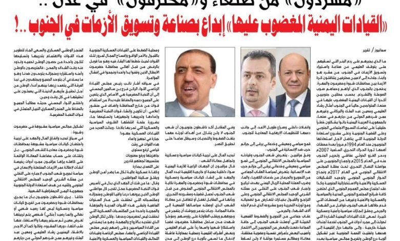 مشردون من صنعاء ومحترفون في عدن.. القيادات اليمنية المغضوب عليها«إبداع بصناعة وتسويق الأزمات في الجنوب…!»