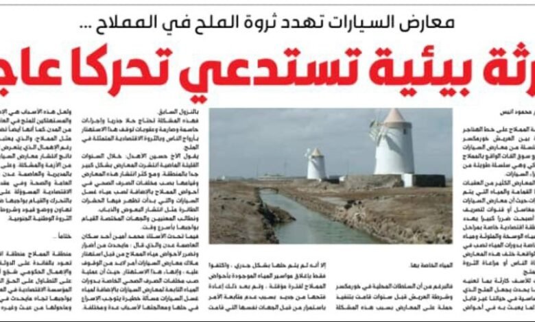 معارض السيارات تهدد ثروة الملح في المملاح.. كارثة بيئية تستدعي تحركاً عاجلاً..!