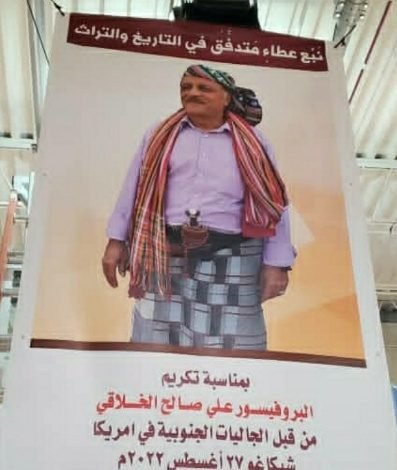 تستعد مدينة شيكاغو مساء اليوم السبت 27أغسطس 2022م لحفل تكريم الشخصية السياسية والأكاديمية والإعلامية الجنوبية، البروفيسور علي صالح الخلاقي بمبادرة ورعاية من أبناء الجالية الجنوبية في ألينوي وبمشاركة عددٍ من الجاليات الجنوبية من مختلف الولايات الأمريكية والشخصيات السياسية والاجتماعية الجنوبية وضيوف شرف قادمون من بريطانيا وكندا.
