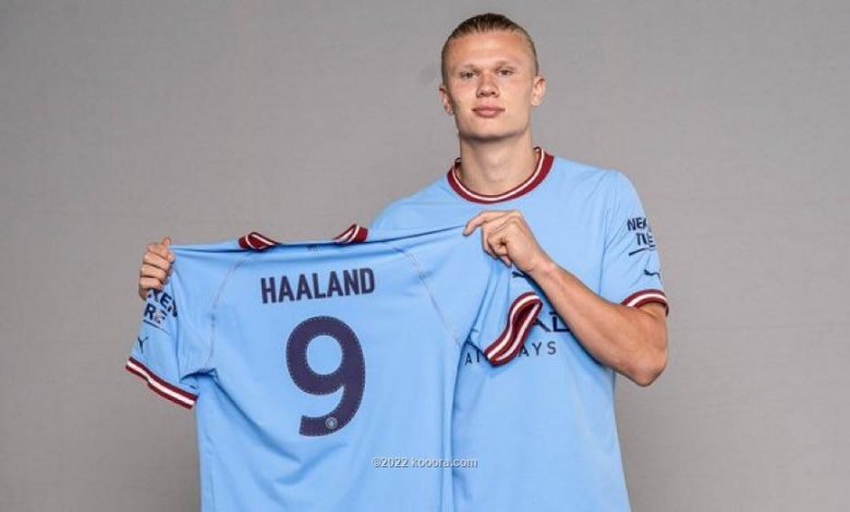 ونشر الحساب الرسمي لمانشستر سيتي، على موقع التواصل الاجتماعي “تويتر”، صورة لهالاند يرتدي القميص رقم 9.