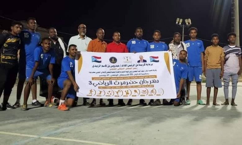 البطولة التي تنظمها إدارة الشباب والطلاب بانتقالي حضرموت ويشرف عليها العميد الركن سعيد أحمد المحمدي رئيس الهيئة التنفيذية للقيادة المحلية للمجلس الانتقالي الجنوبي بحضرموت تقام إلى جانب تسع ألعاب رياضية متنوعة في مهرجان حضرموت الرياضي بنسخته الثالثة.