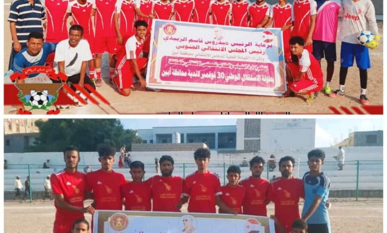 تتجه أنظار عشاق كرة القدم الابينية عصر يوم غد الخميس الموافق ٢٠٢٢/١٢/٨ إلى مديرية خنفر ،ارضية ملعب الفقيد البيتي للمواجهة الكروية المرتقبة التي تجمع بين المارد الأحمر الحساني ونادي الحضن في نهائي بطولة كأس الإستقلال ٣٠ نوفمبر لأندية محافظة أبين والتي تقام برعاية كريمة من القائد عيدروس الزبيدي رئيس المجلس الانتقالي الجنوبي وإشراف تنفيذية إنتقالي أبين وتنظيم إدارة الشباب والطلاب بالمجلس الانتقالي بالمحافظة وبمشاركة ٢٢ نادي من محافظة أبين من الدلتا والمنطقة الوسطى ويافع