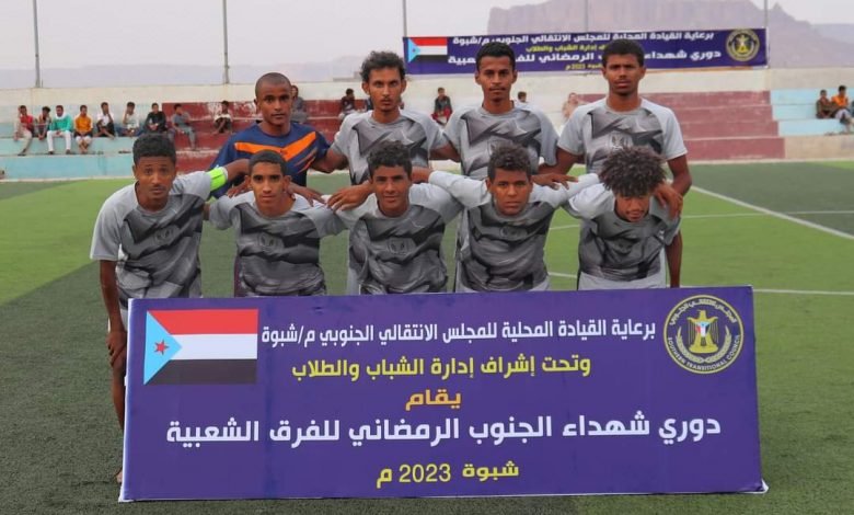 تواصلت منافسات دوري شهداء الجنوب الرمضاني التي تقام برعاية القيادة المحلية للمجلس الانتقالي الجنوبي م/ شبوة، وتحت إشراف إدارة الشباب والطلاب، بإقامة مباراتان ضمن المجموعة الثانية، وانتهت بفوز صمود اكتوبر على باكبيرة بثلاثة أهداف مقابل هدفين ، وخسارة نجوم حبان أمام شباب عياذ أربعة لواحد.