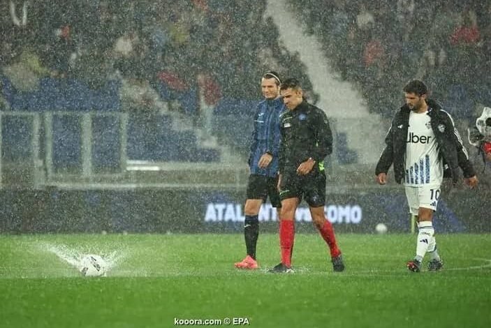 وأضاف” حاول طاقم عمل الملعب تنظيف أرض الملعب وتم تحديد موعد الانطلاق بعد حوالي نصف ساعة، لكن هطول الأمطار تواصل على ملعب جيويس في بيرجامو.