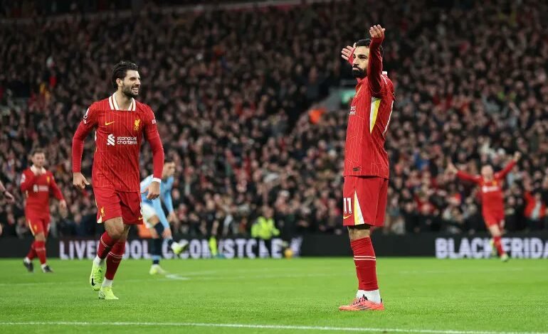 سجل ثنائية ليفربول، كودي جاكبو ومحمد صلاح (ركلة جزاء) في الدقيقتين 12 و78، ليرفع رصيده إلى 34 نقطة في الصدارة، فيما توقف السيتي عند 23 نقطة في المركز الخامس.
