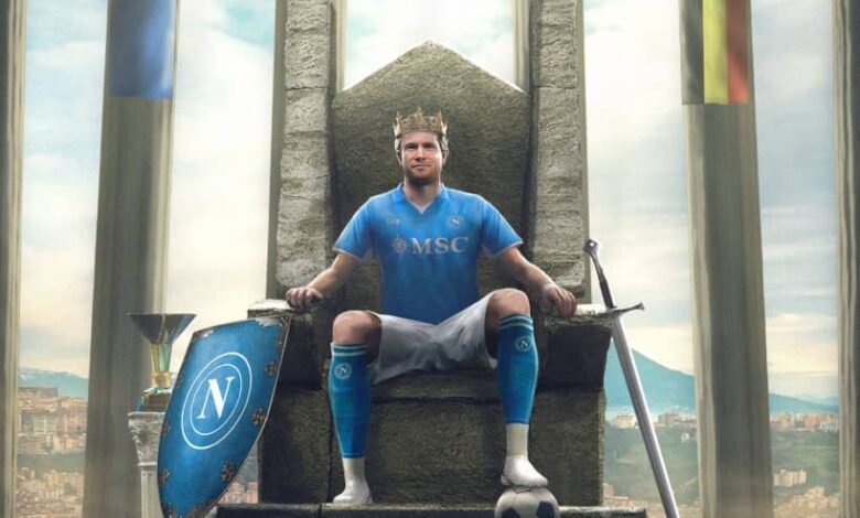 ونشر نابولي عبر حسابه الرسمي على منصة “إكس”، صورة لدي بروين وهو جالس على عرش وعلق عليها قائلا: “الملك كيفن هنا”.