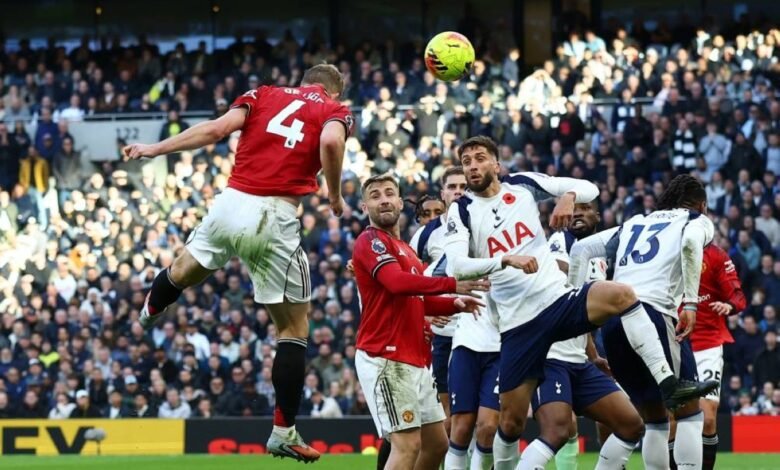 سجل ماتيس دي ليخت هدفاً برأسه في الدقيقة السادسة من الوقت المحتسب بدل الضائع ليقود مانشستر يونايتد للتعادل 2-2 مع توتنهام هوتسبير في الدوري الإنجليزي الممتاز لكرة القدم، اليوم السبت، بعدما اعتقد ريتشارليسون أنه منح أصحاب الأرض الفوز أيضاً في الوقت بدل الضائع. وافتتح برايان مبيمو، الذي انضم إلى يونايتد صيفاً، التسجيل من محاولة فريقه الأولى على المرمى في الدقيقة 32، إذ حول تمريرة أماد ديالو إلى داخل الشباك بعد فشل توتنهام في تشتيت الكرة، محرزاً الهدف السادس هذا الموسم. واستعرض توتنهام كأس الدوري الأوروبي قبل انطلاق المباراة، في تذكير بانتصاره على يونايتد في نهائي مايو الماضي، الذي ضمن له التأهل إلى دوري الأبطال.