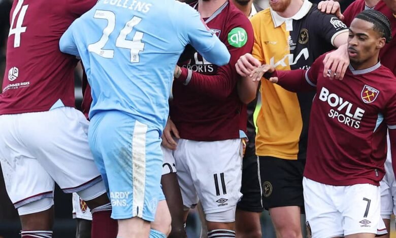شهدت مواجهة وست هام يونايتد، ضد بيرتون ألبيون، في دور 32 بكأس الاتحاد الإنجليزي، فوضى وشجار جماعي.
