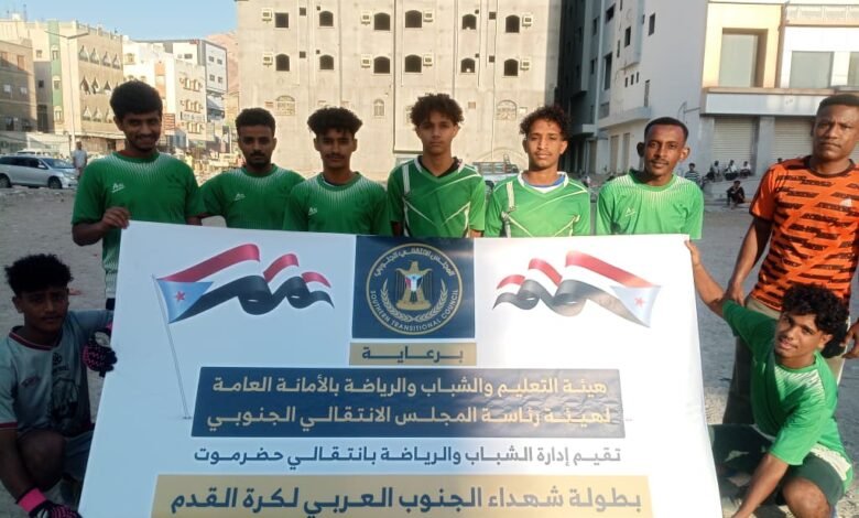 استمرار منافسات “بطولة شهداء الجنوب العربي” لكرة القدم بمدينة المكلا بحضرموت ، والتي تقام برعاية كريمة من هيئة التعليم والشباب والرياضة بالأمانة العامة لهيئة رئاسة المجلس الانتقالي الجنوبي وتنظمها إدارة الشباب والرياضة بانتقالي حضرموت بالتنسيق مع مجلس الفرق الرياضية الشعبية في منطقة الشرج وبمشاركة 24 فريق.