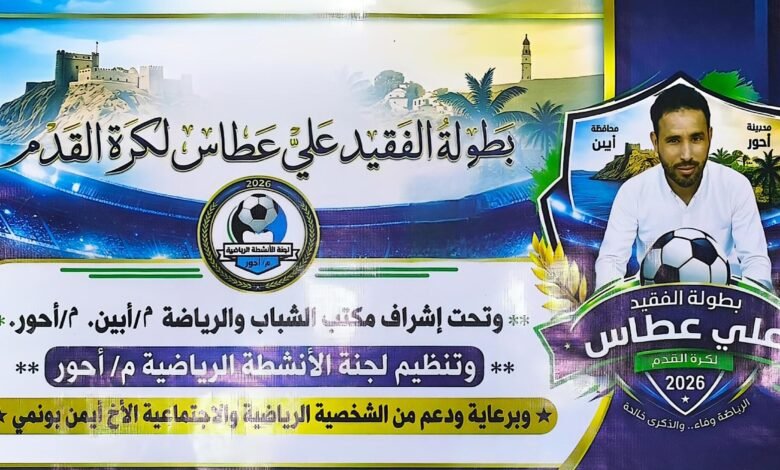 وكانت اللجنة المنظمة قد كشفت قبل يومين عن تفاصيل قرعة البطولة التي تشهد مشاركة 16 فريقاً شعبياً من مديرية أحور ومنطقة عرقة التابعة لمديرية رضوم بمحافظة شبوة، حيث وضعت القرعة فريقي “شباب المجد” و”شباب البندر” في مواجهة مرتقبة لافتتاح منافسات هذا الحدث الكروي.