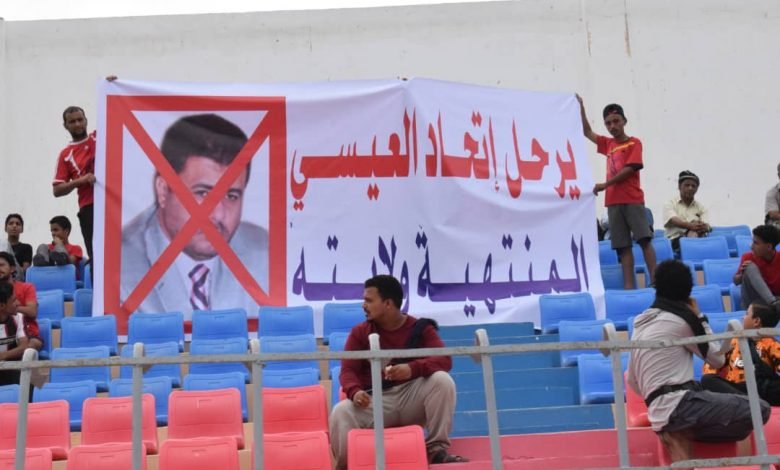 هذا وقد رفع عدد كبير من الجماهير الرياضية عصر السبت في ملعب الحبيشي أثناء مباراة التلال والشعلة ضمن منافسات بطولة الفقيد سامي نعاش لبراعم اندية عدن، طالبوا فيها برحيل العيسي وجماعته من الإتحاد العام لكرة القدم فوراً متوعدين خروج كافة الجماهير الرياضية بمختلف ألوانها ومواقعها بمظاهرة وطالبة الإتحاد الدولي(فيفا) والاسيوي لكرة القدم بالتدخل وحل أزمة الكرة اليمنية بشكل عام.