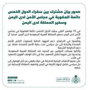#عاجل.. صدور بيان مشترك بين سفراء الدول الخمس دائمة العضوية في مجلس الأمن لدى اليمن وسفير المملكة لدى اليمن “وثيقة”.