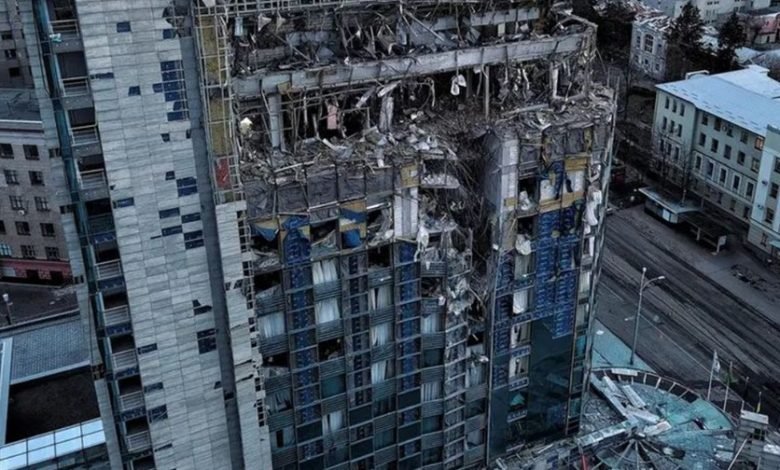إصابة 11 شخصاُ بقصف روسي على فندق في خاركيف الأوكرانية.