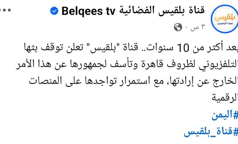 وبررت القناة توقفها بأسباب “قاهرة وخارجة عن الإرادة”، غير أن مصادر إعلامية أكدت أن بلقيس واجهت خلال الأشهر الماضية أزمة تمويل خانقة وضغوطًا على الجهات الداعمة، إلى جانب فقدانها المتزايد لجمهورها بعد انكشاف دورها في تبرير العنف وتزييف الوقائع في محافظات الجنوب.