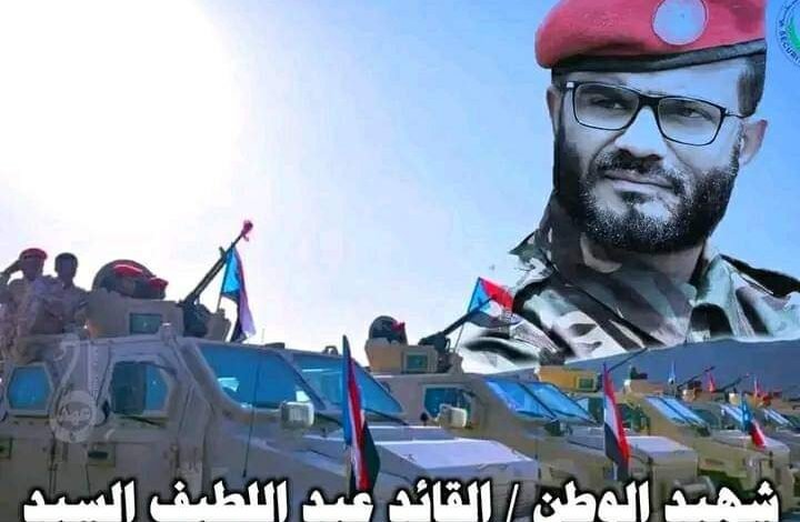 القائد الشجاع في الذكرى الاولى لاستشهاده نستذكر بكل فخر وتقدير تضحياتة الجسام في سبيل الوطن، لقد كان الشهيد عبد اللطيف السيد رمزاً للبطولة والشجاعة وقدم حياتة فداءً لارض الجنوب وضحى بكل ما يملك وبنفسة من اجل امن واستقرار محافظة أبين خاصة والجنوب عامة.