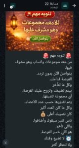وهو شراء مجموعات الواتساب عبر مشرفي المجموعات على أساس أن هناك مسابقات عليها مكافات لكل مشرفي المجموعات التي توافق على الانضمام إلى مجتمعاتهم الافتراضية..!.