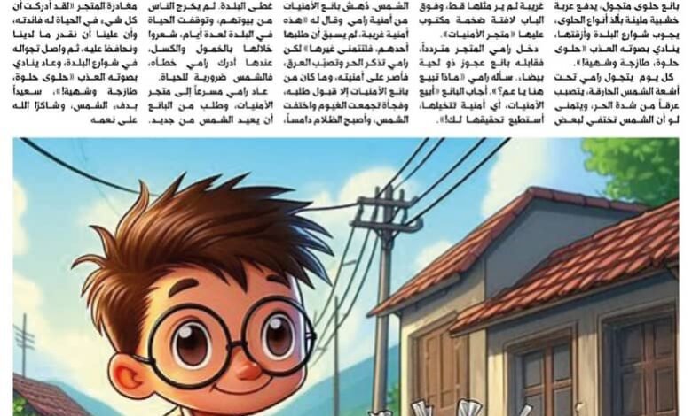قال رامي لبائع الأمنيات قبل مغادرة المتجر “لقد أدركت أن كل شيء في الحياة له فائدته، وأن علينا أن نقدر ما لدينا ونحافظ عليه، ثم واصل تجواله في شوارع البلدة، وعاد ينادي بصوته العذب: “حلوى حلوة، طازجة وشهية!”، سعيداً بدفء الشمس، وشاكرًا الله على نعمه.