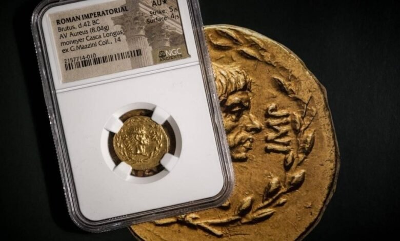 بيعت قطعة نقود ذهبية رومانية نادرة جدا تحمل صورة بروتوس، أحد المشاركين في قتل يوليوس قيصر، لقاء 2,09 مليون دولار ضمن مزاد أقيم الاثنين في جنيف، على ما أعلنت دار “نوميسماتيكا جنيفنسيس” التي نظّمت المزاد.