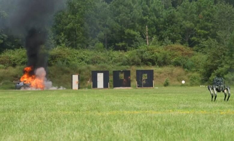 كشفت شركة Skyborne Technologies عن روبوت رباعي الأرجل مزود بقاذف قنابل محمول على ظهره، صُمّم لتقديم “قدرة قاتلة” في ساحات المعارك.