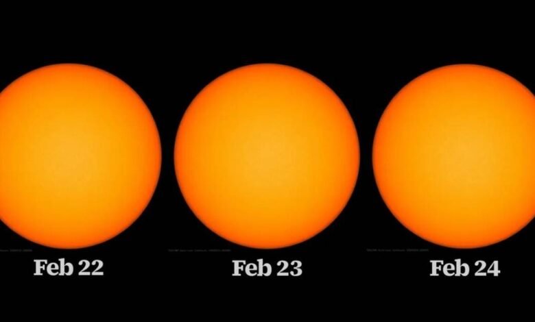 شهدت الشمس ثلاثة أيام صافية خالية من البقع الشمسية من 22 إلى 24 فبراير الجاري، وهذه هي المرة الأولى منذ أربع سنوات التي يخلو فيها الجانب المواجه للأرض من الشمس من أي بقع شمسية.
