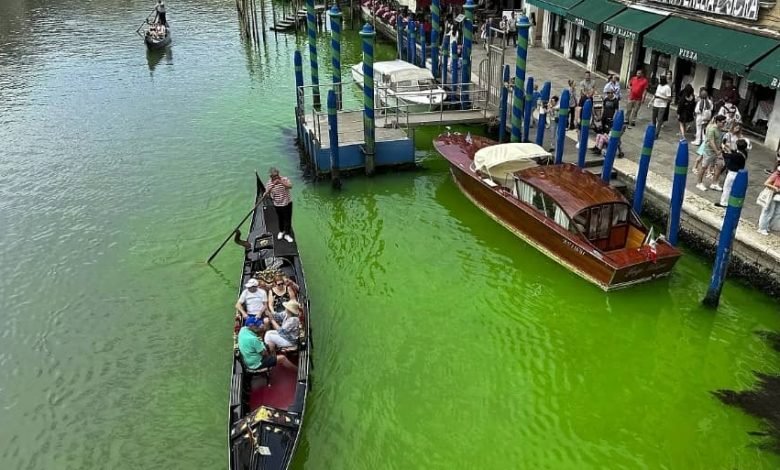 تحوّل قسم من مياه القنال الكبير في البندقية بإيطاليا إلى اللون الأخضر الفلوري، ما دفع الشرطة إلى إجراء تحقيق وسط تكهنات بأنّ الواقعة يقف خلفها ناشطون بيئيون.