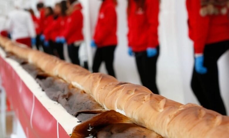 أعد خبازون فرنسيون أطول رغيف خبز فرنسي في العالم، أمس، بطول 140.53 متراً ليستردوا الرقم القياسي الذي انتزعته إيطاليا قبل خمس سنوات. وشهدت منطقة سورين في باريس إعداد الرغيف الذي يزيد طوله على الرغيف التقليدي بمقدار 235 مرة تقريباً.