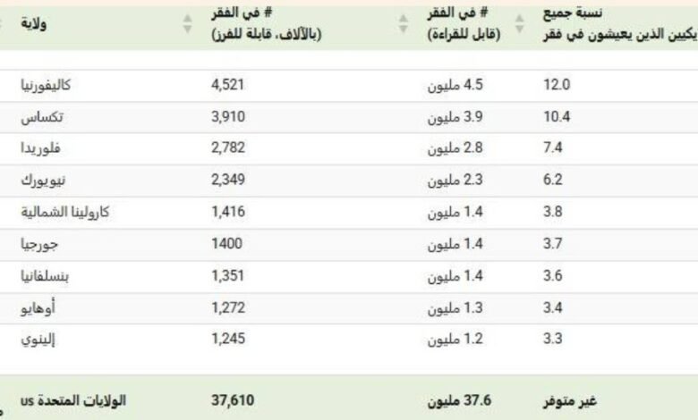 كريترنيوز /متابعات /السيد محمود المتولي يبلغ عدد الفقراء في أمريكا 37.6 مليون وفق تقرير حديث لمكتب الإحصاء الأمريكي وتتصدر كاليفورنيا…
