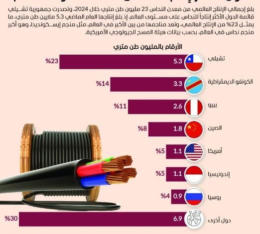 الدول الأكثر إنتاجاً للنحاس على مستوى العالم