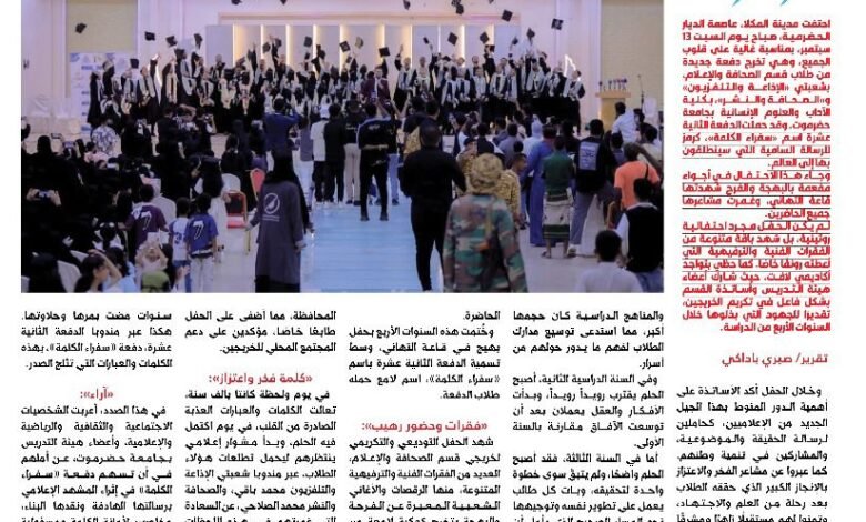 أكمل القراءة »تقرير/ صبري باداكي احتفت مدينة المكلا، عاصمة الديار الحضرمية، صباح يوم السبت 13 سبتمبر، بمناسبة غالية على قلوب الجميع، وهي…
