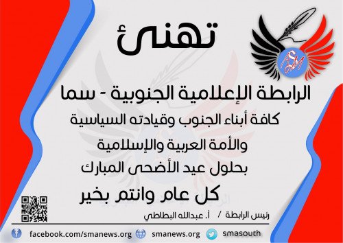 أكمل القراءة »كريترنيوز / السعودية تتقدم جالية أبناء الجنوب العربي بالمملكة العربية السعودية ودول الخليج العربي، بأسمى آيات التهاني والتبريكات للشعب الجنوبي…